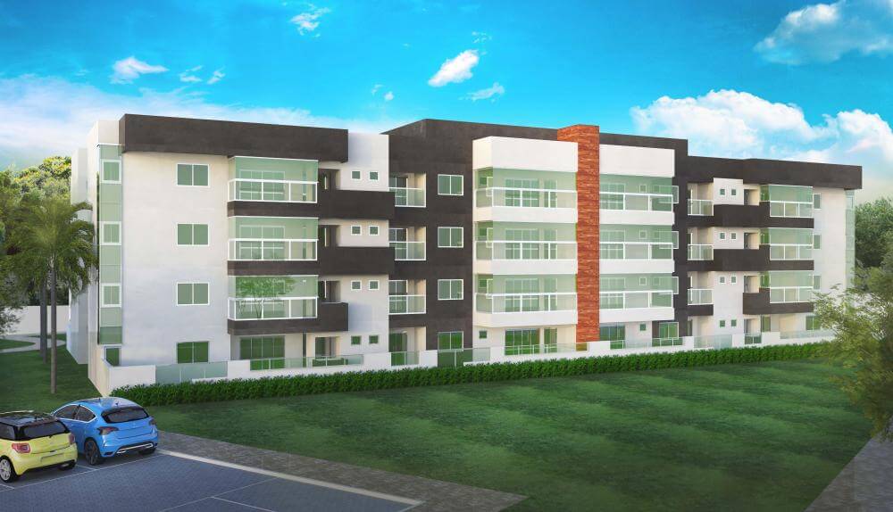 Estudo de residencial com área de lazer no terraço.